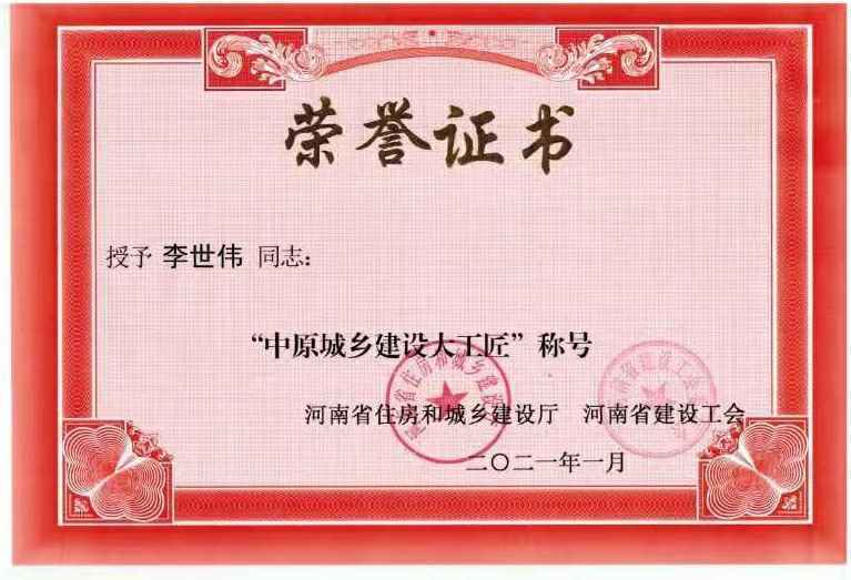 安博站官网登录入口-安博(中国)李世伟同志获“中原城乡建设大工匠”称号